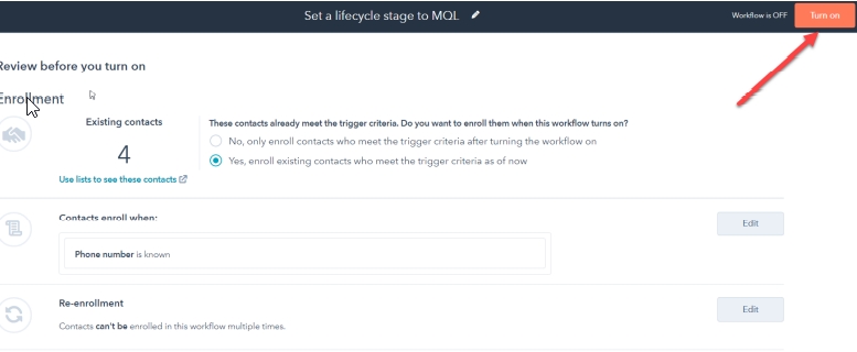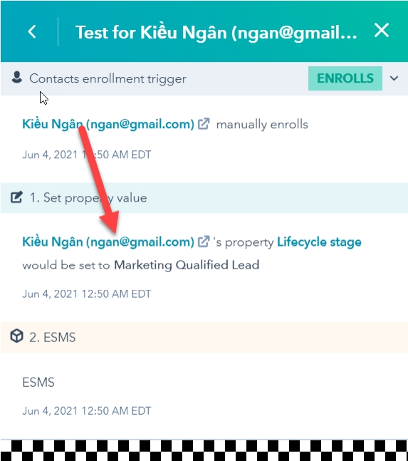 Bước 5: Sau khi bấm Save thì Contact Enrollment Trigger sẽ là: