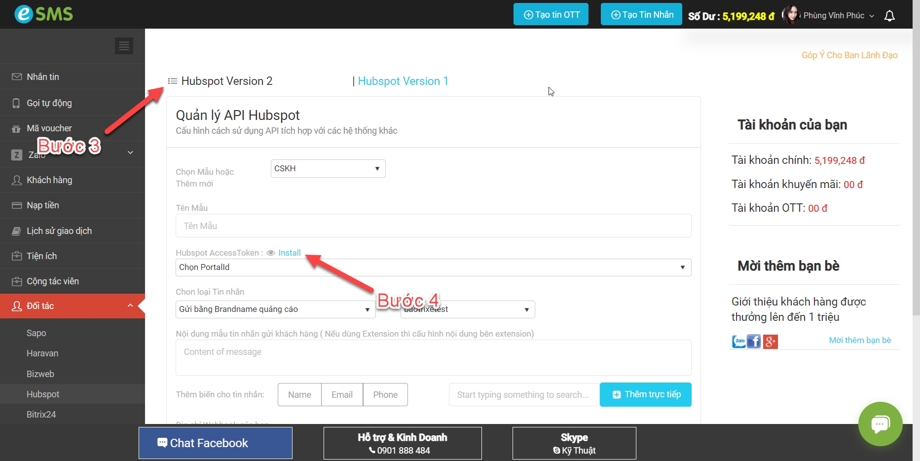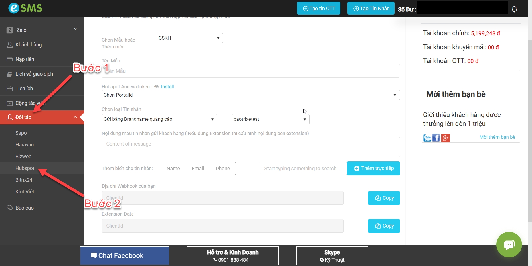 PHẦN 1: CẤU HÌNH TÍCH HỢP eSMS - HUBSPOT