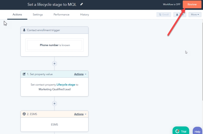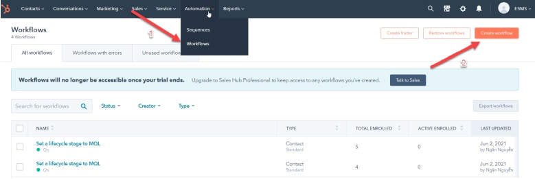 Bước 3: Vào hubspot để tạo và cấu hình workflow gửi tin