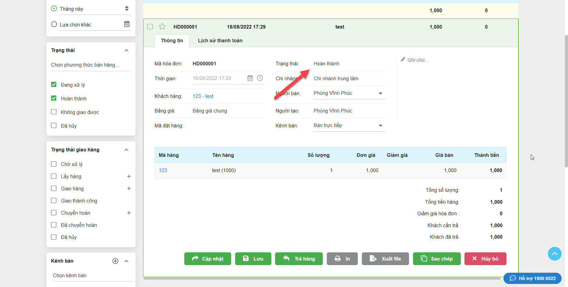 Sau khi đã cài đặt kết nối hoàn tất sẽ đến bước tạo kịch bản cho đơn hàng KiotViet