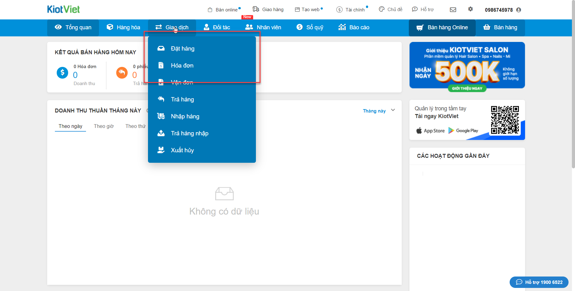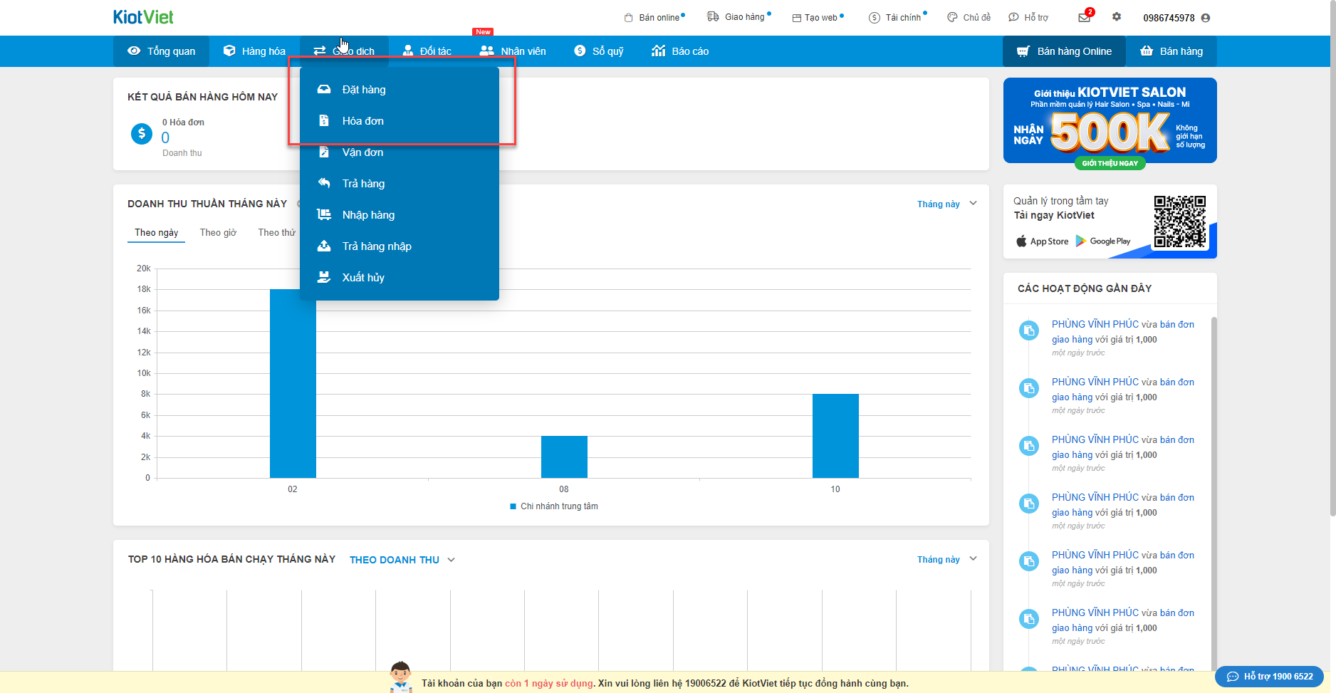LÊN ĐƠN VÀ GỬI TIN HỆ THỐNG KIOTVIET