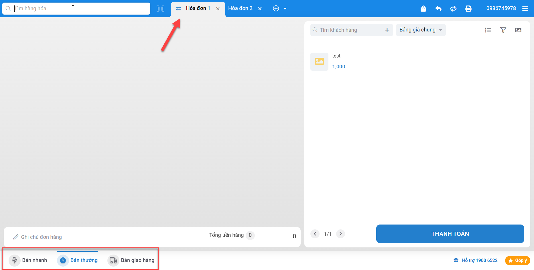 Ứng với 2 chức nằng ĐẶT HÀNG và HÓA ĐƠN bên phía KiotViet