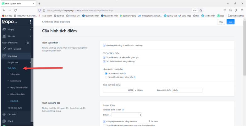 Bước 1: Cấu hình ứng dụng Tích điểm trên SAPO