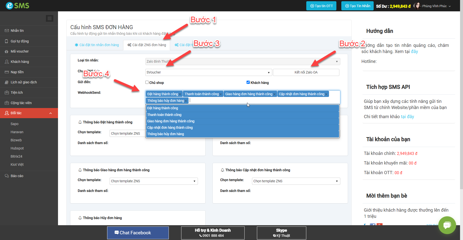 ⚙ TÍCH HỢP GỬI TIN ZNS